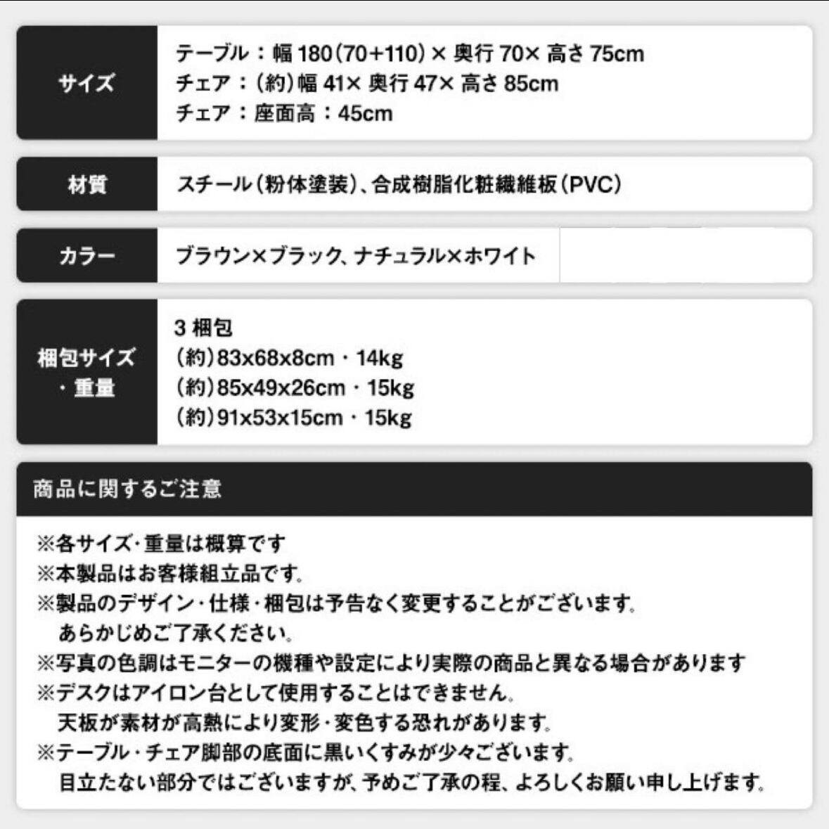 テーブル:(約)幅180(70+110)×奥行70×高さ75cm