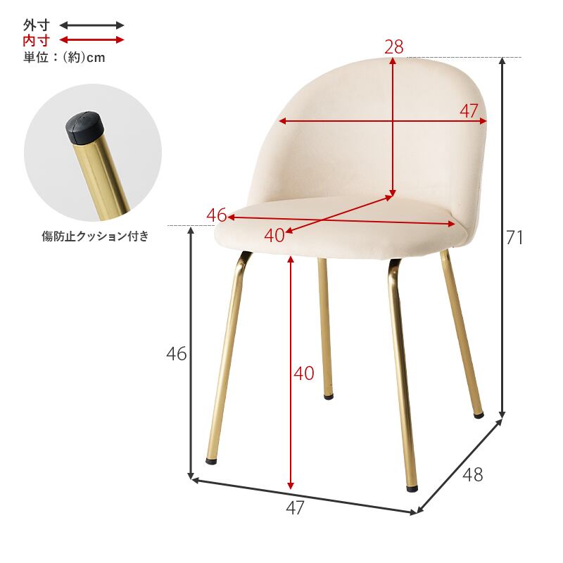 (約)幅47×奥行48×高さ71×座面高46cm
