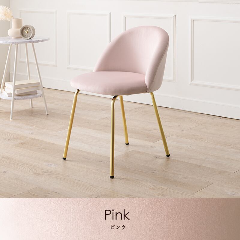 ころんとした座面にゴールドの脚がフェミニンなインテリアチェア。