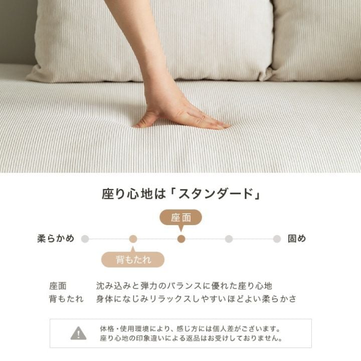 ゆったりくつろげるゆとりのある広々座面と、片側アームレスト仕様で快適なリラックスタイムを実現。