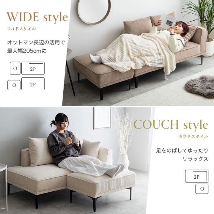 セットのオットマンを組み合わせることで、お部屋の間取りやシーンに合わて柔軟にレイアウトを変更できます。