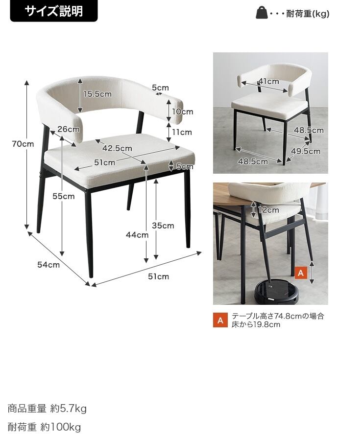 幅51cm×奥行54cm×高さ70cm(座面高:44cm)