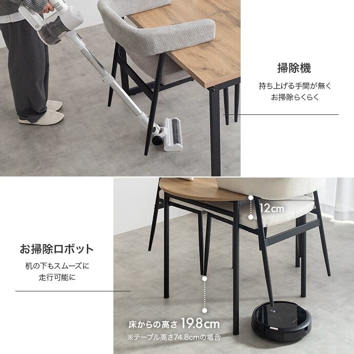 肘掛けをテーブルに掛けられるため、掃除の際もチェアを持ち上げる手間なくロボット掃除機や床掃除をスムーズに行えます。