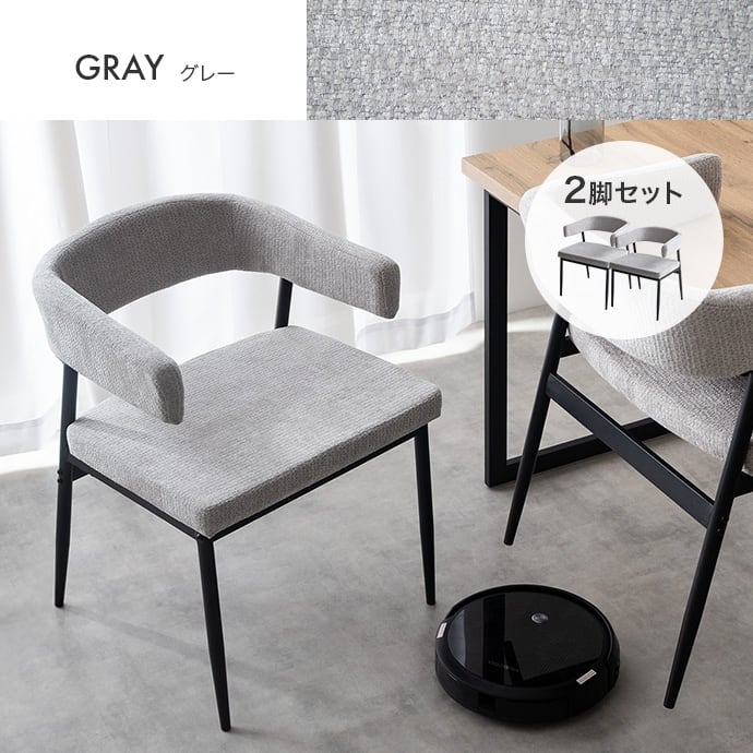 【2脚セット】ダイニングチェア お掃除ロボ対応 肘付き アームチェア