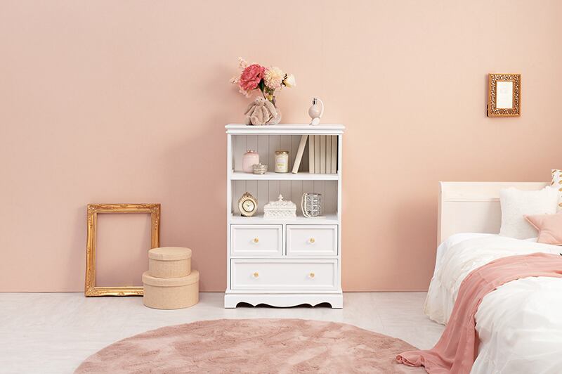 キラキラとしたクリスタル調の取っ手がついた上品なオープンラック。