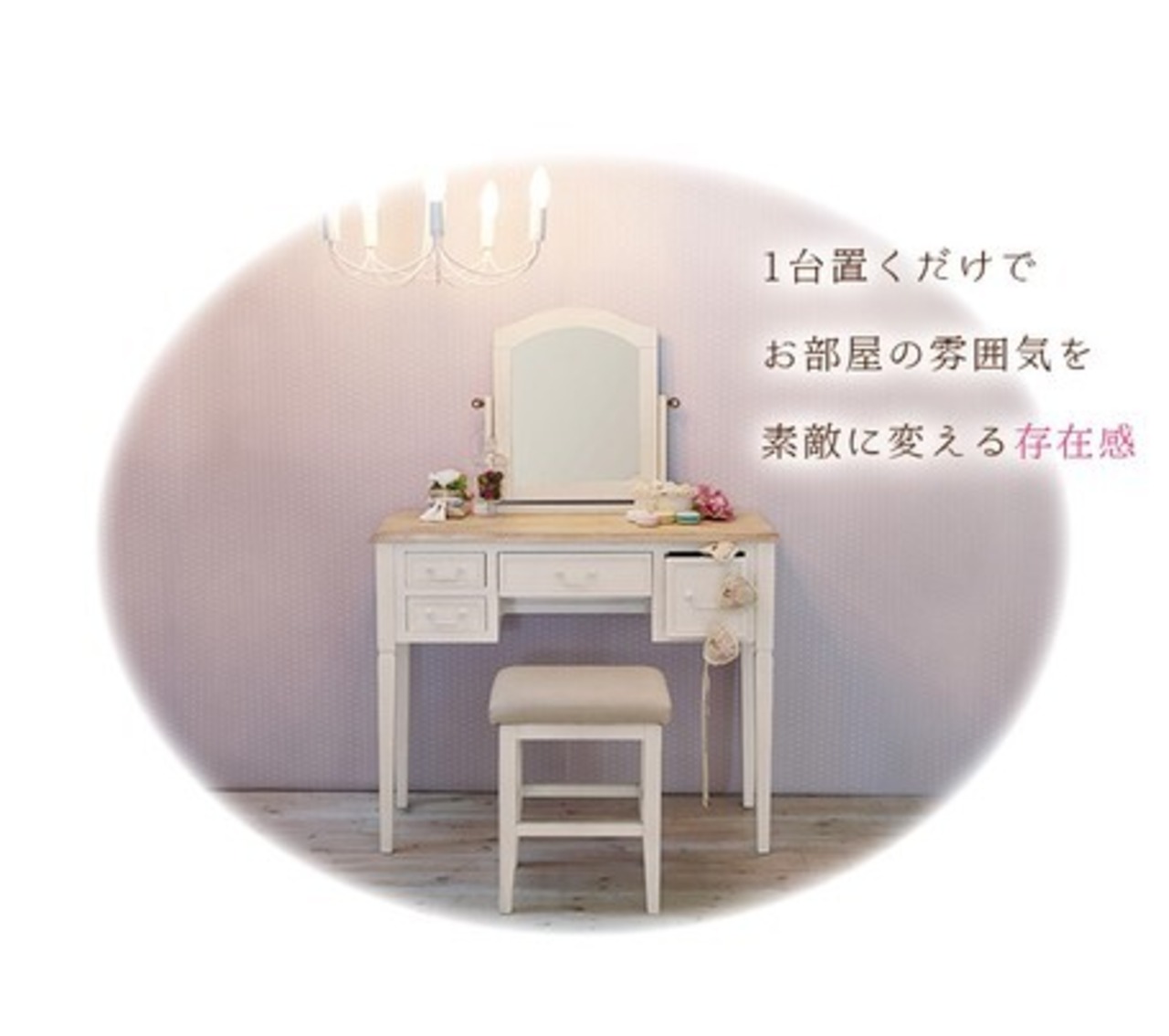 かすれたペンキや月日を経た木の質感など、シャビーテイストを再現したドレッサー。