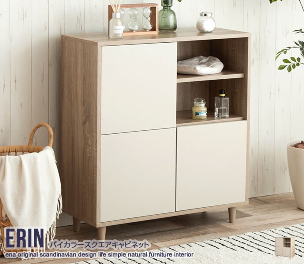 隠す収納、見せる収納を兼ね備えたスクエアキャビネット『Erin(エリン)』。