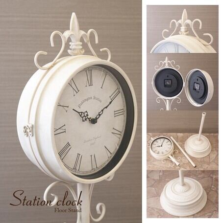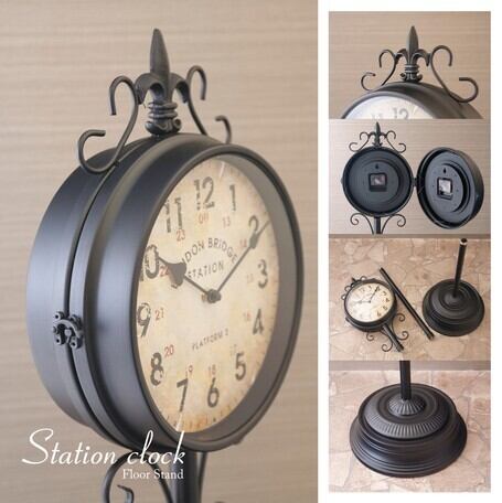 外国の駅やお家で見かけそうなおしゃれなフロアスタンドの時計です。