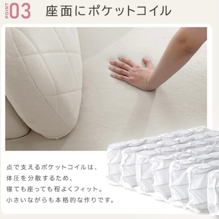 座面にはポケットコイルを搭載しており、耐久性と弾力のある上質な座り心地です。