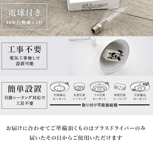 ■シャンデリア球(E17/40W)×5個付(約)幅45×奥行45×高さ45cm