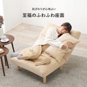 ワイド座面のうえ肘がないのでさらに広々くつろげるソファです。