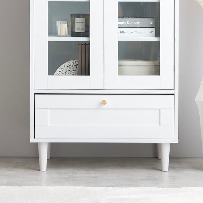 ワンルームにぴったりのコンパクトサイズでありながらも、充実した収納スペース。デザイン性と実用面を兼ね備えたガラスキャビネットです。