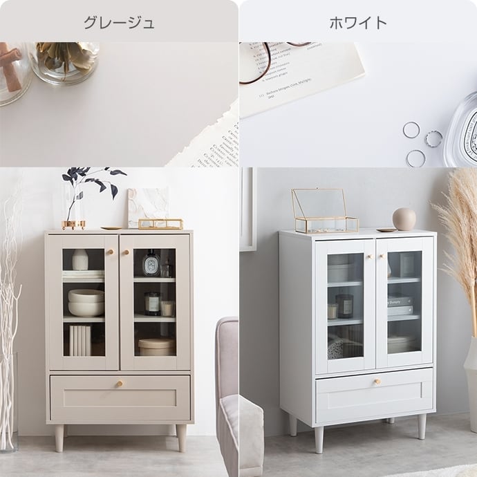 海外インテリア風の框デザインをあしらった『Calan(カラン)』ガラスキャビネット。