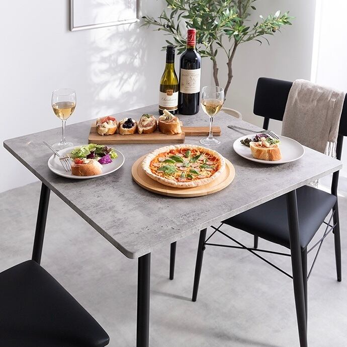 石目柄とブラックスチールを組み合わせた『Evie(エヴィ)』シリーズのダイニングセット。